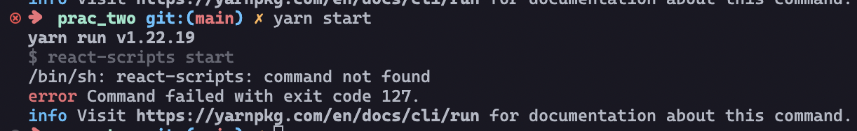 1) error Command failed with exit code 127. info Visit https://yarnpkg.com/en/docs/cli/run for documentation about this command.